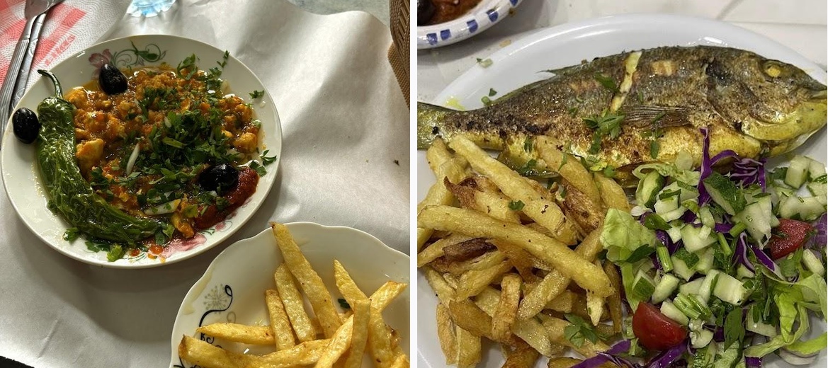 Definitely try the roasted chicken, also known as 'dojaj.' The fish dishes and the Kafteji are popular as well. Portions are generous, making it easy to satisfy your appetite.